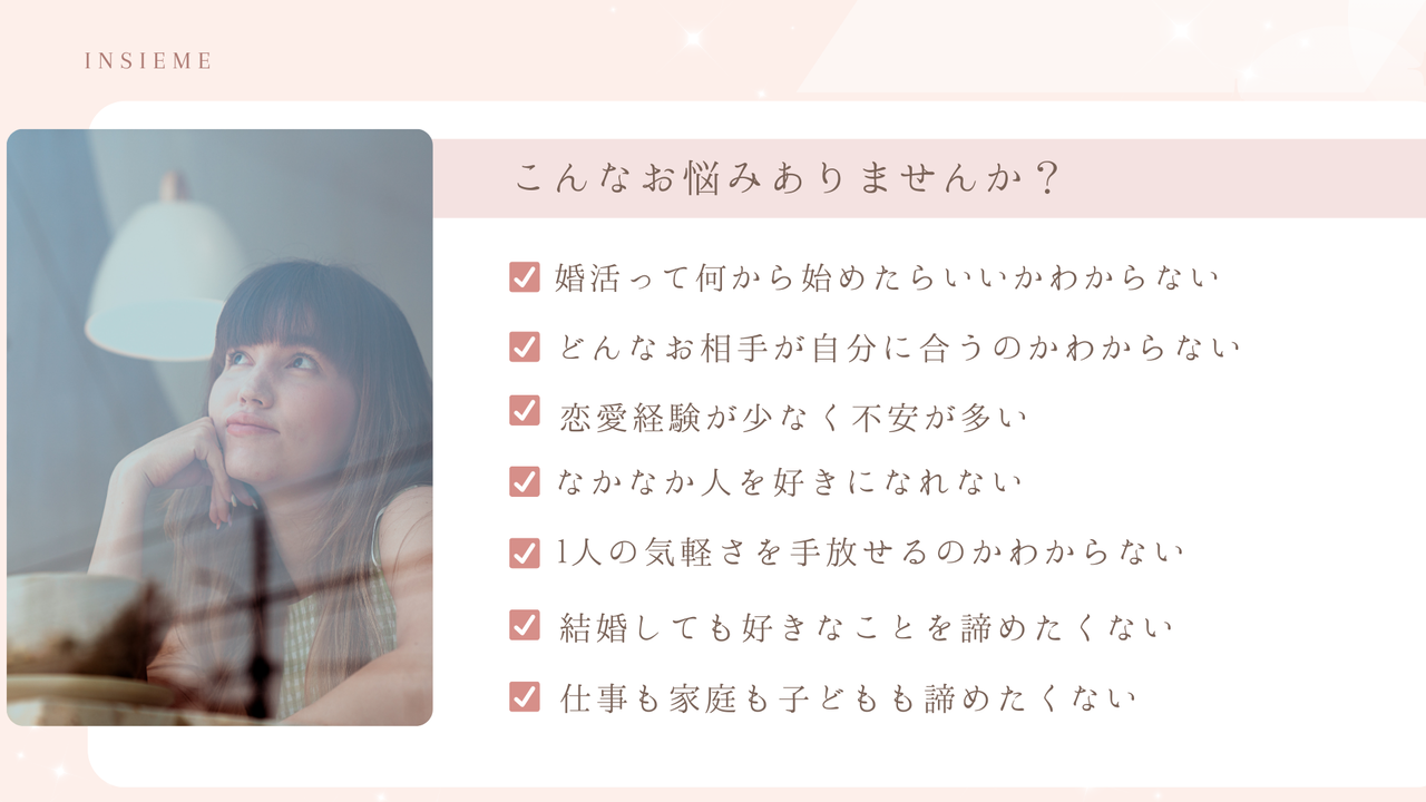 男性の婚活と同じく、婚活力診断で現在の立ち位置を見つけ、あなただけの婚活ロードマップをカウンセラーと話し合いながら作成いたします。