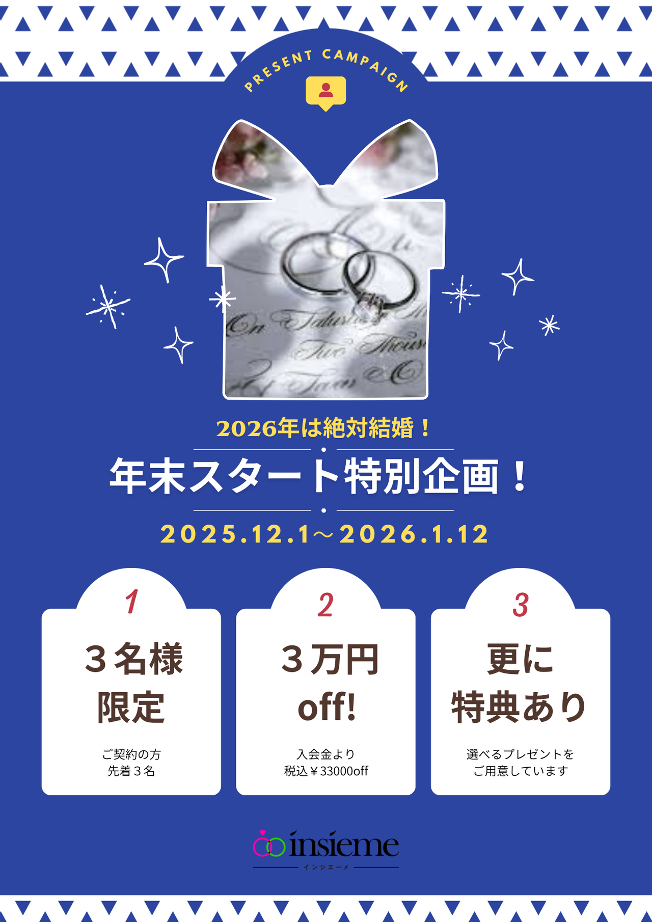 *1月12日までにご契約いただいた方の先着3名様のみ入会金より¥33.000(税込)OFFとなります。